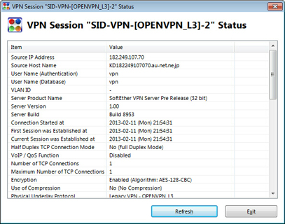 You can browse the list of current active VPN guest session by opening the "VPNGATE" virtual hub.